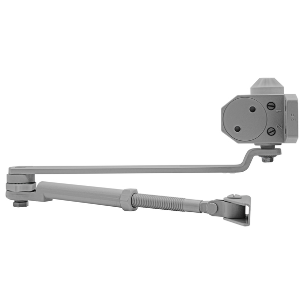В данной модификации доводчик оснащен стандартной тягой с возможностью фиксации двери в открытом положении, начиная с угла 80°. Такая функция пригодится для удобного проветривания помещения или облегчения доступа в коммерческих и общественных объектах. Серый цвет корпуса гармонично дополнит дверь соответствующих оттенков, обеспечивая стильный вид и незаметность.