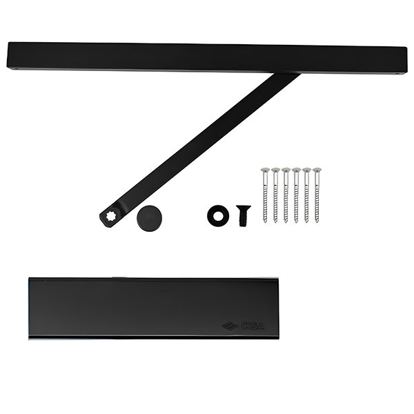 CISA C2011.03 – это компактный и функциональный доводчик из серии Professional Plus2, разработанный для накладного монтажа на внутренние и наружные дверные полотна. Это устройство рассчитано на работу с дверью весом до 60 кг и шириной до 950 мм. Обеспечивает их плавное и надежное закрытие, что делает его безупречным решением для жилых помещений и легких коммерческих конструкций.