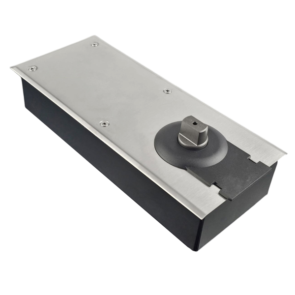 Устанавливается скрытым врезным монтажом в пол. Обеспечивает открытие дверей с максимальным углом 115°. Непосредственно на корпусе можно регулировать начальную (в диапазоне 115°-20°) и конечную скорость закрытия (20°-0°). Благодаря этому можно добиться индивидуальной настройки закрывания двери так как Вам нужно. Гидравлическое масло в данной модели высокого качества. Благодаря этому проблем при работе доводчика при перепаде температур не будет.