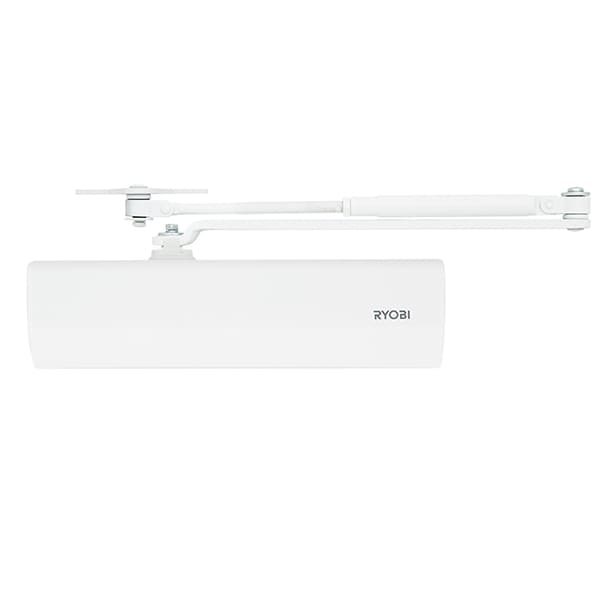 Продукция японского производителя RYOBI по праву признана во всем мире благодаря своему отличному качеству. Данная модель RYOBI D-2550 BC UNIV устанавливается накладным монтажом на дверные полотна массой до 80 кг и шириной до 1100 мм. Есть возможность установки с помощью кронштейна параллельного положения тяги относительно дверей для сохранения дизайна помещения или использования доводчика в условиях ограниченного пространства. Тогда максимальный вес и ширина полотна должны быть меньше. Гидравлический привод обеспечивает четкую работу доводчика с углом открывания до 180°. Непосредственно на корпусе есть возможность регулировать основную скорость в пределах 180°-10°, скорость захлопывания - 10°-0° и тормоз открывания - 75°-180°. Данная функция защищает дверное полотно от удара о стену и вырывания тяги доводчика. Благодаря этому можно достичь индивидуальной настройки закрытия дверей так как Вам нужно. Особенность доводчиков RYOBI - специальное термоконстантное масло. Оно обеспечивает стабильную работу даже при большом перепаде температур. Вообще рабочая температура варьируется в диапазоне от -20 до + 45°С. RYOBI D-2550 BC UNIV может быть установлен на лево и правосторонние двери с возможностью открывания как внутрь так и наружу. В данной комплектации присутствует стандартная тяга без фиксации дверного полотна в открытом положении. Однако данный доводчик сертифицирован для использования с противопожарными дверями. В белом цвете лучше будет дополнять двери подобных светлых оттенков для того, чтобы максимально избежать контрастов и не привлекать лишнего внимания.