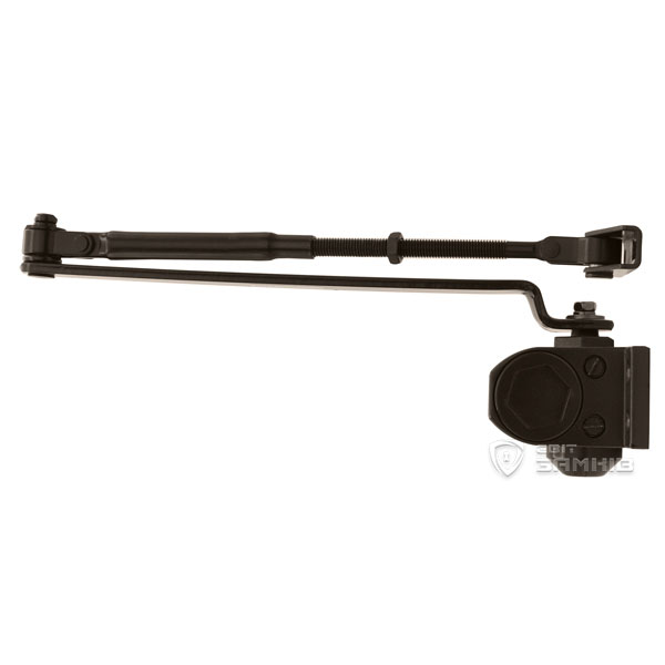 В данной комплектации присутствует стандартная тяга БЕЗ фиксации дверного полотна в открытом положении. При необходимости можно дополнительно приобрести кронштейн, позволяющий установить тягу в параллельное положение к двери. Это сделает её менее заметной. Станет актуальным в случаях, когда требуется минимальное вмешательство в дизайн дверного полотна или в условиях ограниченного пространства.