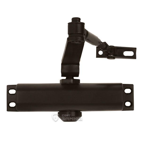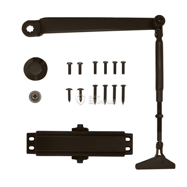 Доводчик надежный и рассчитанный минимум на 500 000 циклов открывания/закрывания. В коричневом цвете лучше всего будет дополнять двери аналогичных темных оттенков, чтобы максимально избежать контрастов и не привлекать лишнего внимания.