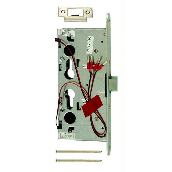 Электромеханический замок для использования в металлических противопожарных дверях (согласно EN 1634-1), которые открываются наружу.