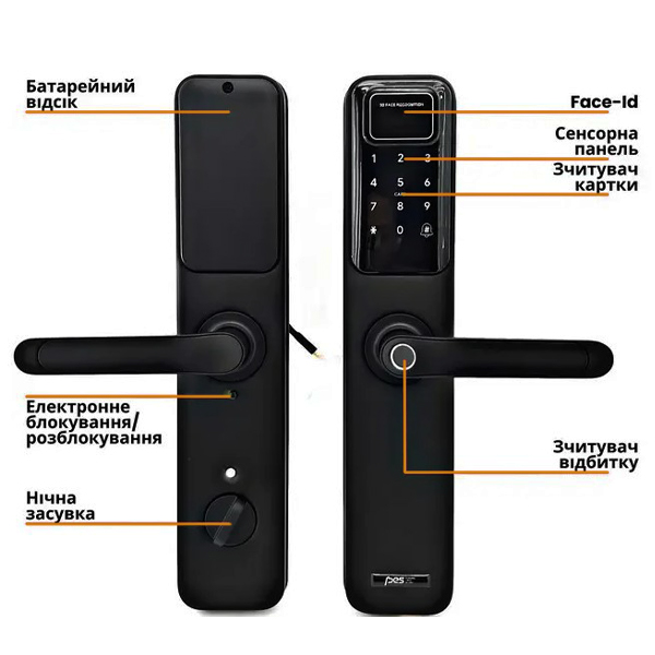 - Розумний замок PES Arteon Face-ID накладний чорний ⭐