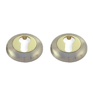 Накладки APECS изготавливаются из цинкового сплава. Используются в качестве декоративного элемента маскировки отверстий под сердцевину и для придания эстетического вида дверному полотну. Состоят из двух половинок на обе стороны двери. Подходят в пару к ручкам APECS с круглой розеттой в сочетании цветов "сатин/золото". В монтаже не требуют дополнительных усилий.