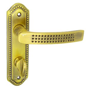 Ручки на планке турецкого производства. Эта модель представляет собой качественную дверную фурнитуру, которая идеально дополнит межкомнатное дверное полотно. Тип планки под вороток позволяет устанавливать такие ручки на двери в ванную или туалет, хотя по желанию они могут использоваться, например, на дверях в кухню. Латунный материал характеризуется высоким уровнем прочности и надежности. Ручки из такого материала приятные на ощупь и устойчивые к коррозии. Короткая планка компактно смотрится на дверях и не будет привлекать к себе излишнее внимание. Внешний вид защищен специальным гальваническим покрытием, которое гарантирует устойчивость цветового оттенка к стиранию и царапинам в течение 120 месяцев. Цвет античная обработка - уместно будет выглядеть в квартире или доме с темными коричневыми оттенками. Изысканный классический дизайн идеальный выбор для дверного полотна, которое украшено различными орнаментами или узорами. Планка крепится к двери за счет шурупов. При монтаже важно прочно зафиксировать ручки гужоном, это специальный винт, который увеличит долговечность и позволит избежать проблем с их провисанием или расшатыванием.