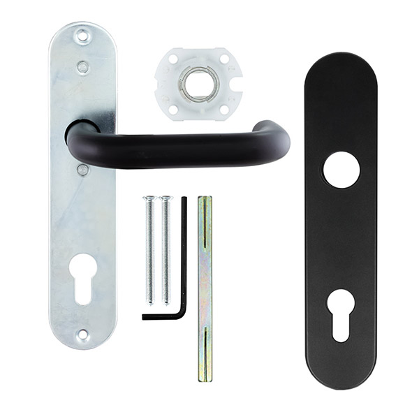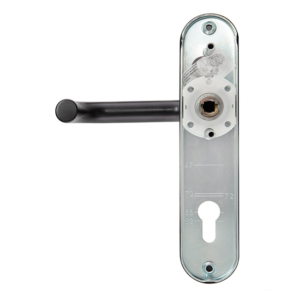 Ручка на планке TESA SDF32EXNE с округлым дизайном выполнена в черном цвете. Эргономичная форма ручки придаст удобства в использовании. Планка имеет отверстие под сердцевину стандарта EuroDIN. Межосевое расстояние составляет 85 мм. Это основополагающий критерий в процессе выбора такого типа дверных ручек. Предназначена для установки на противопожарную входную металлическую дверь с замками типа TESA 2035T, 2037F, 4039T, 2230BA и 2240PA. Внутренняя плата изготовлена из стали, наружная пластина и ручка из пластика. Планка ручки крепится к дверному полотну стяжными винтами. Ручка сертифицирована по стандартам DIN 18273 и EN 179.