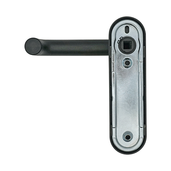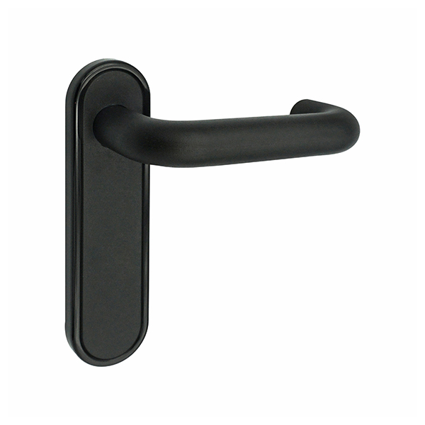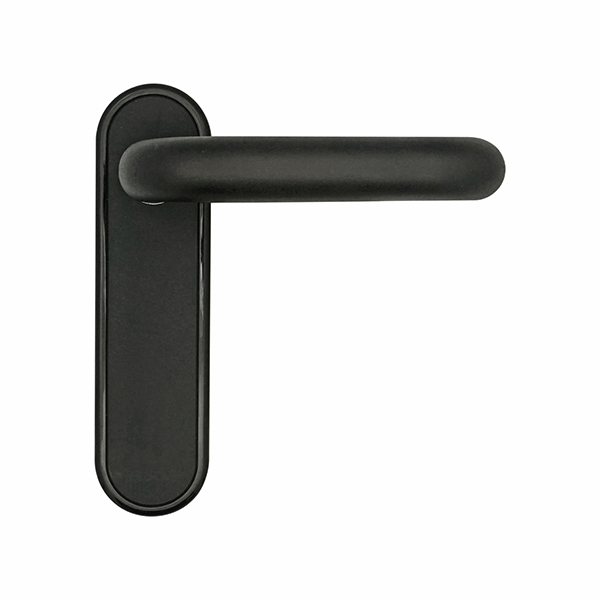 Ручка нажимная. Главным преимуществом этой модели является отсутствие возвратной пружины и качественные материалы. Внутренняя плата изготовлена ​​из стали, наружная пластина и ручка из качественного пластика. Планка глухая без отверстий под сердцевину. В трендовом черном цвете будут прекрасно подходить к двери темного оттенка или как акцентный элемент фурнитуры к светлым полотен.