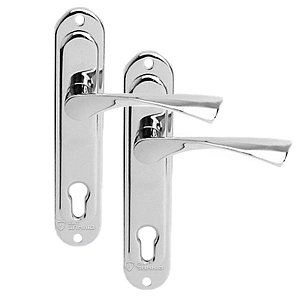 Ручки на планке торговой марки AVERS. Устанавливаются на входные или межкомнатные деревянные двери. Материал изготовления - алюминиевый сплав, его преимущество в том, что он легкий и приятный на ощупь. Ручки покрыты методом гальваники, что обеспечит устойчивость цветового оттенка к стиранию и царапинам втечение 36 месяцев. Популярный цвет - хром - прекрасно подойдет для интерьера с яркими светлыми оттенками. Удачный выбор ручки на планке зависит от межосевого расстояния, оно бывает разное и обусловлено тем, какой у Вас установлен замок. Такая модель имеет тип планки под сердцевину и подходит для механизма замка с межосевым расстоянием 61,5 мм. Крепления обеспечивается за счет стяжных винтов. Для того чтобы увеличить срок эксплуатации и избежать проблем с провисанием ручки, ее нужно как следует зафиксировать специальным винтом - гужоном. Дизайн в стиле модерн прекрасно дополнит Ваше дверное полотно с плавными линиями.