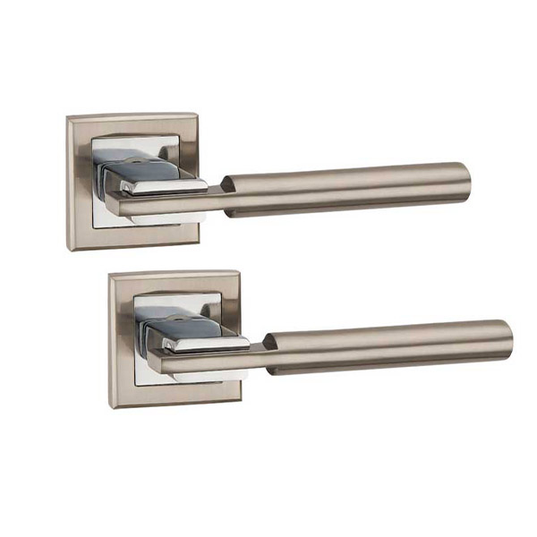 Интересный дизайн и доступная цена делают ручки PUNTO едва ли не лучшим выбором в своем ценовом сегменте. Данную модель устанавливают на межкомнатные и внутренние входные двери. Сочетание цвета "матовый никель" с хромом мы советуем использовать в помещениях со светлыми или тепло-серыми либо бежевыми оттенками. Конструктивно ручки изготовлены из алюминия. Удобная нажимная часть не будет создавать дискомфорта при работе. Также гальваническое покрытие гарантирует сохранность их внешнего вида в течение длительного времени. Квадратная розетта удачно прикроет отверстия для крепления. При необходимости дополнительно можно выбрать вороток или накладки на сердцевину в этом же цвете.