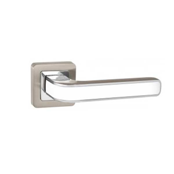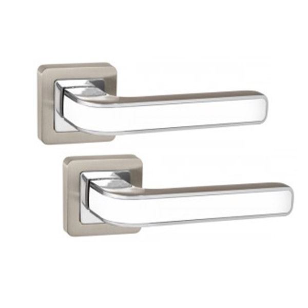 Интересный дизайн и доступная цена делают ручки PUNTO едва ли не лучшим выбором в своем ценовом сегменте. Данную модель устанавливают на межкомнатные и внутренние входные двери. Сочетание цвета "матовый никель" с белым мы советуем использовать в помещениях со светлыми или тепло-серыми либо бежевыми оттенками. Конструктивно ручки изготовлены из алюминия. Удобная нажимная часть не будет создавать дискомфорта при работе. Также гальваническое покрытие гарантирует сохранность их внешнего вида в течение длительного времени. Квадратная розетта удачно прикроет отверстия для крепления. При необходимости дополнительно можно выбрать вороток или накладки на сердцевину в этом же цвете.