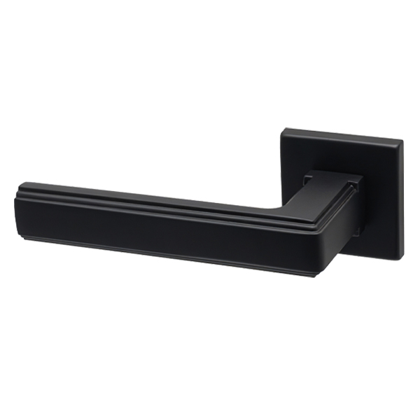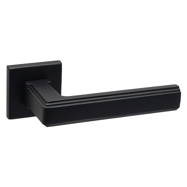 Данная модель выполнена из четких прямых линий нажимной части и квадратной розетты. Зрительно ручки дополнят композицию любого интерьера в стиле хай-тек или минимализм. На дверном полотне будет современный и сдержанный вид. В цвете черный матовый идеально впишутся в дверную фурнитуру аналогичных оттенков. Благодаря матовой поверхности на ручках не будет оставаться следов пальцев и пыли. Это обеспечит их ухоженный внешний вид в течение длительного времени.