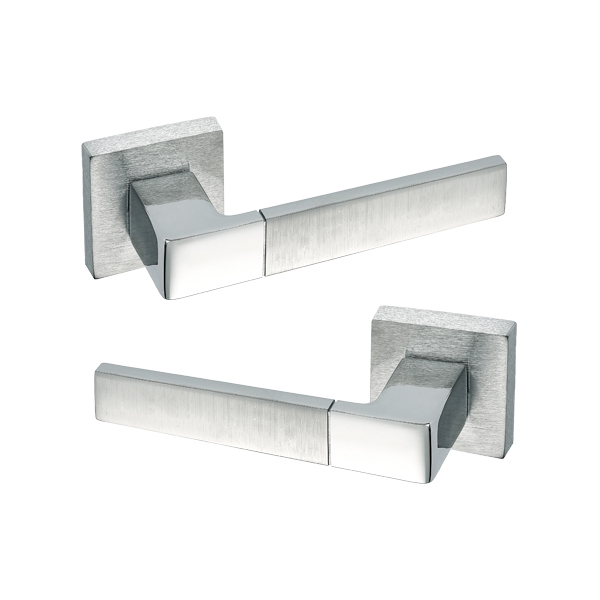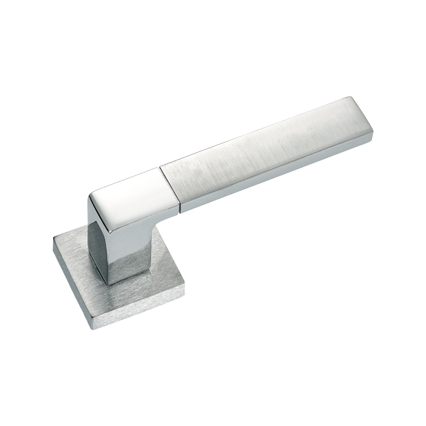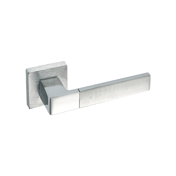 Особенностью данной модели является сочетание двух цветов. Комбинация глянцевого и матового хрома сразу привлекает к себе внимание добавляя определенной изюминки и особенности. Ручки с двумя оттенками будут гармонично смотреться на дверном полотне в любом интерьере аналогичных оттенков. Прямые четкие линии нажимной части и квадратной тонкой розетты визуально дополнят и завершат композицию в стиле хай-тек и минимализма.