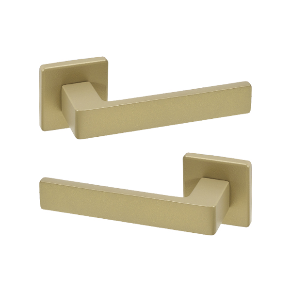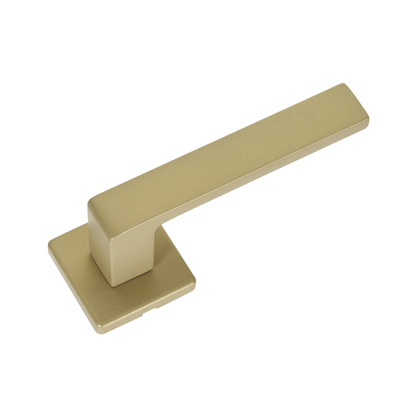 Данная модель выполнена из прямых четких линий нажимной части и квадратной розетты. Визуально ручки будут дополнять композицию любого интерьера в стиле хай-тек или минимализм. На дверном полотне будут выглядеть современно и одновременно сдержанно. В цвете "золото" идеально впишутся в дверную фурнитуру аналогичного оттенка. Также могут использоваться на темном или светлом деревянном полотне, добавляя определенного акцента в интерьере.