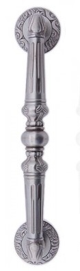 Ручка скоба торговой марки TRION. Представляет из себя элегантную дверную фурнитуру по доступной цене. Ручки цельнолитые из цинкового сплава, благодаря чему они прочные и устойчивые к коррозии. Таким образом их внешний вид будет сохранен от стирания более 60 месяцев. Фурнитура такого типа удобна в использовании и имеет длительный срок эксплуатации. Трендовый цвет – античное серебро – хорошо подчеркнет дом или комнату в светлых тонах. Изысканный дизайн в классическом стиле гармонично дополнит дверное полотно с различными орнаментами и узорами, а также довершит интерьер с элементами классики. Основным техническим критерием при выборе является длина ручки и расстояние между креплениями. Важно чтобы при установлении скобы, крепления разместились выше и ниже замка. Чаще всего ручки такого типа используют с замком "бочкой". Если ручка устанавливается только одна то она фиксируется на шурупы, которые прикрываются внешней розеттой. Если же ручки ставятся две - через дверное полотно делается сквозное отверстие, куда вставляется специальная шпилька с резьбой. На нее накручивается ручка и фиксируется гужонами на нижней и верхней розетте.