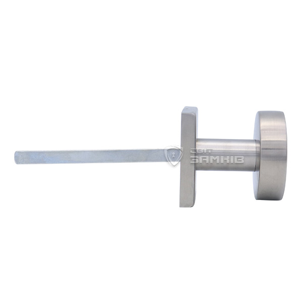 Сочетание круглого и квадратного дизайна в цвете матовой нержавеющей стали лучше подходит для современных дверных полотен в подобных оттенках и помещений с элементами модерна в интерьере. Благодаря круглой форме и материалу изготовления ручка приятна на ощупь и надежна в использовании.