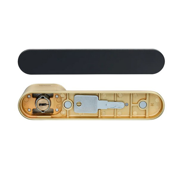 Особенностью данной модели является функция блокировки запирающего механизма. Для этого имеется специальный переключатель, расположенный на оборотной стороне одной из ручек. Он фиксирует процесс нажатия как снаружи, так и изнутри. Это означает, что в любой момент Вы можете зафиксировать квадрат ручек так, чтобы никто не мог открыть дверь и зайти в помещение. Для того чтобы открыть дверь, необходимо переключить рычаг тумблера в исходное положение. В экстренных случаях есть возможность разблокировать дверь с помощью физического ключа. Она находится под декоративной пластиной. Ручка-защелка предназначена для установки на полотна обеих сторон. Врезной механизм, который присутствует в комплекте, отвечает за тихое и легкое закрывание межкомнатных дверей. Магнитный язычок полностью спрятан в корпус замка при открытой двери и выдвигается только в момент закрывания двери.