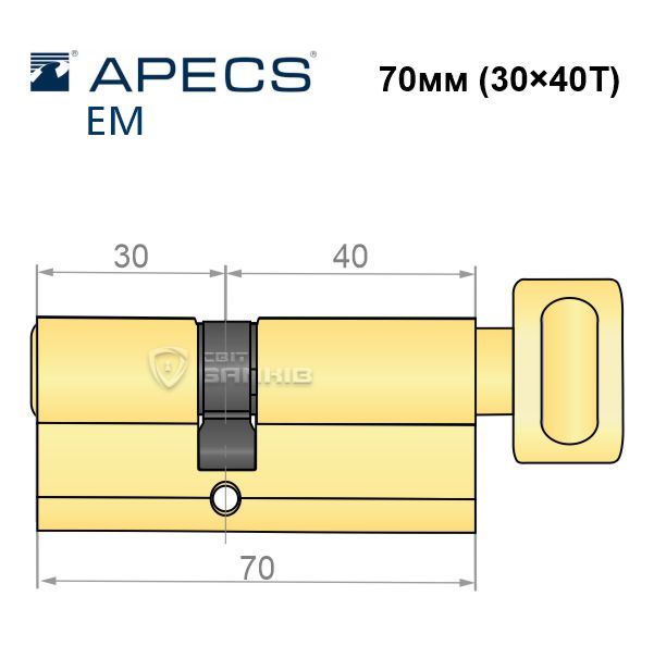 Цилиндр APECS EM 70Т (30*40Т) латунь матовая