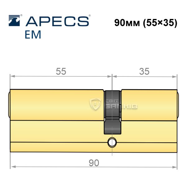 Цилиндр APECS EM 90 (35*55) латунь матовая