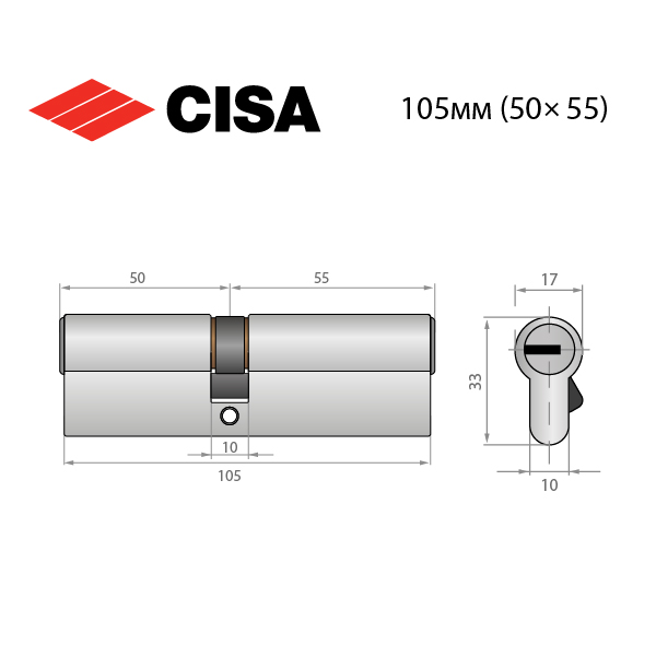 Описание Цилиндр CISA ASIX P8 105 (50*55) никель матовый 5 ключей
