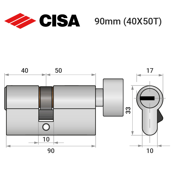 Описание Цилиндр CISA ASIX P8 90T (40*50T) никель матовый 3 ключа