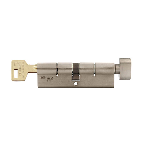 Все кодирующие пины изготовлены из закаленной стали повышенной твердости, что создает защиту от высверливания. Фактически они затрудняют прохождение сверла и при попытке сверления оно ломается на первом из пинов, а другие сохраняют свой функционал, и не позволяют открывания, без подбора правильной комбинации. Цилиндр имеет сертификат взломостойкости с высоким уровнем – SKG ** (две звезды из трех возможных), что также свидетельствует и о надежности и долговечности работы.