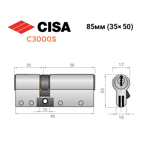 Купить цилиндр CISA C3000S 85 (35*50) никель матовый в розницу и оптом можно на нашем сайте.