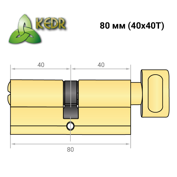 Описание Цилиндр KEDR Brass 80T (40*40T) ZCG полированная латунь