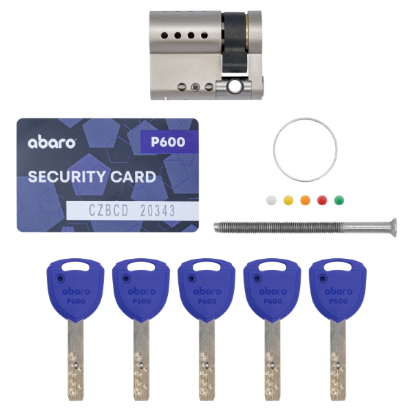 Циліндр ABARO P600 керується ключами профільного (лазерного) типу. Вони виготовлені із міцного матеріалу – нейзильберу. Завдяки ньому забезпечується міцність та стійкість до корозії Ключі мають подовжену шийку леза (15 мм), що робить можливим їхнє використання з будь-якими протекторами циліндрів.