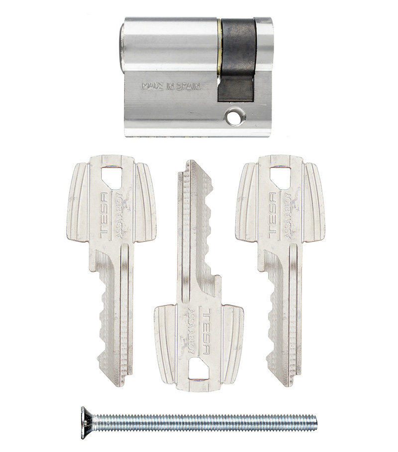 Описание Цилиндр половинка TESA T5 45 (35*10) никель сатин 3 ключа