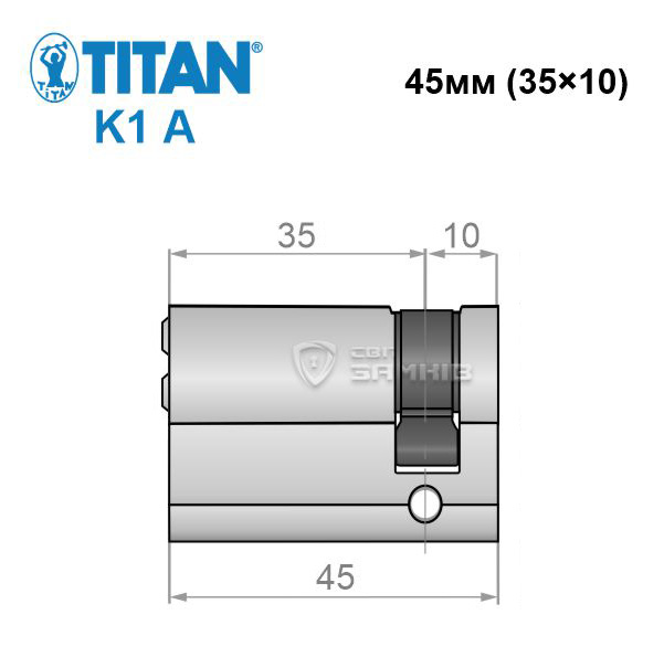 Цилиндр половинка TITAN K1 A 45 (35*10) никель сатин 5 ключей