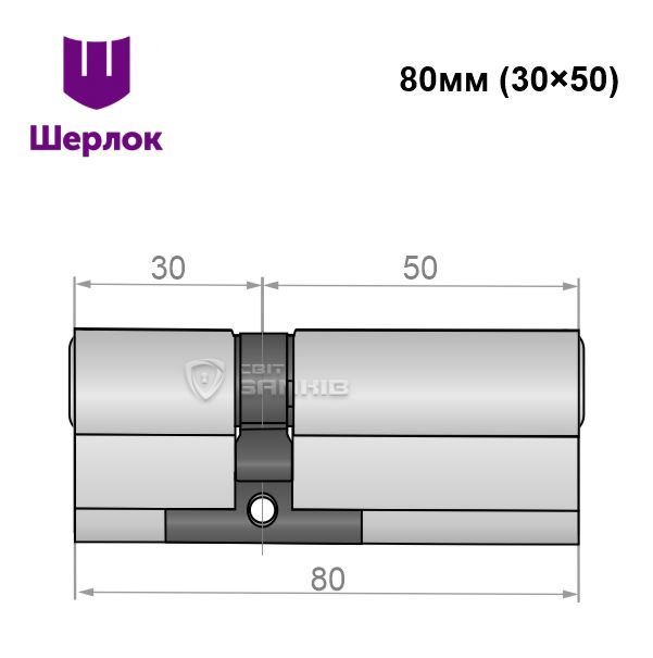 Описание Цилиндр SHERLOCK HK 80 (30*50) никель сатин