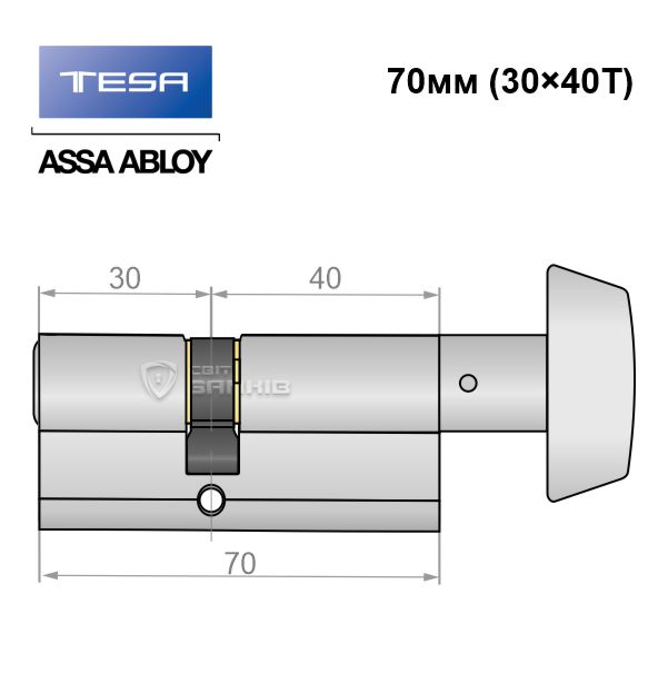 Описание Цилиндр TESA TE5 70T (30*40T) никель сатин 5 ключей
