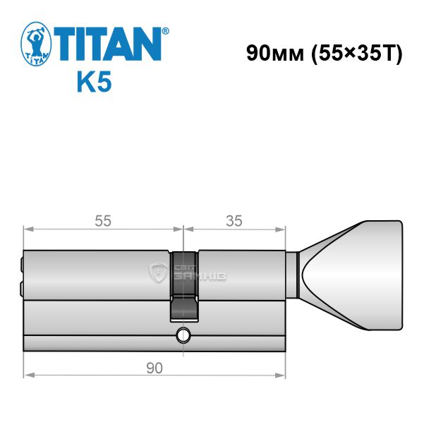 Описание Цилиндр TITAN K5 90Т (55*35Т) никель сатин