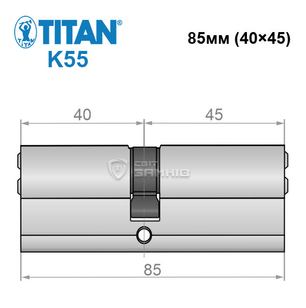 - Цилиндр TITAN K55 85 (40*45) никель сатин ⭐