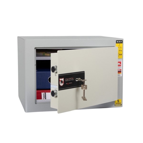 Украинский производитель ПАРИТЕТ-К является одним из лучших и самых прогрессивных в сфере проектирования и изготовления сейфов любой категории. Данная модель GRIFFON M.30.К обладает компактными размерами и при этом достаточно вместительная для бытовых нужд. Ее без проблем можно разместить внутри мебели. Для надежности крепления предусмотрены отверстия для анкерных болтов. Это позволит закрепить сейф к полу или стене. При этом он сертифицирован по классу взломостойкости S1. Это означает, что сейф хорошо противостоит вандальному взлому.