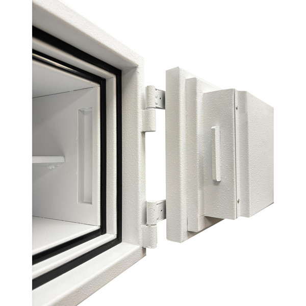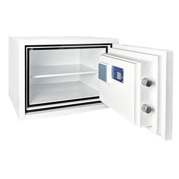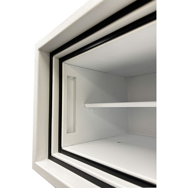 Толщина специального огнестойкого наполнения дверей и корпуса составляет 53 мм. Закрывается сейф электронным кодовым замком GRIFFON 2.0. Это создаст существенный препятствие для злоумышленника. Замыкание производится ригельной системой. Толстые вращающиеся ригеля диаметром 25 мм обеспечат практическую защиту от возможности их перепиливания. Дополнительно со стороны петель есть антисрезы. Конструкция предусматривает специальные карманы для ригелей и антисрезов, которые обеспечивают плотное прилегание двери по всему периметру и повышают устойчивость сейфа к силовым методам взлома. В белом сейф отлично дополнит любое современное помещение.