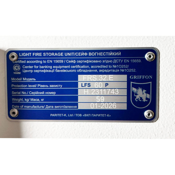 - Сейф вогнестійкий GRIFFON FRS.32.E WHITE ⭐