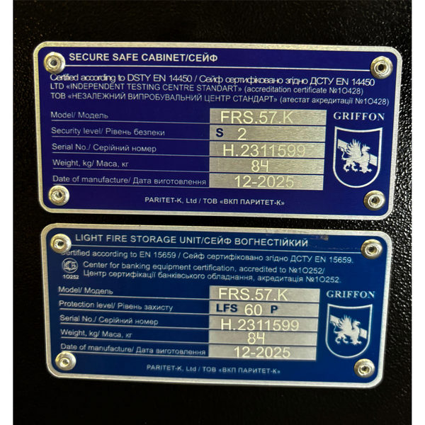 | Модель сейфа: | GRIFFON FRS | |