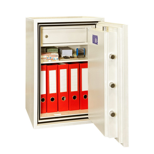 Данная модель GRIFFON FRSL.70.K.Е CREAM из серии FRSL относится к огнестойким. Она способна защищать ценности от воздействия огня в течение 30 минут (класс LFS 30 P). Это означает, что во время пожара температура внутри сейфа не поднимется выше 170°C, чего достаточно для хранения бумажных документов. Дополнительно по периметру двери установлена немецкая термолента BASF, которая при высоких температурах расширяется и как бы "запечатывает" сейф, тем самым дополнительно защищая содержимое от огня. Поэтому это идеальный выбор для помещений, в которых есть риск возникновения пожара. Относительно небольшие габариты позволят разместить его практически где угодно в помещении. Для надежности крепления внизу сейфа предусмотрены отверстия для анкерных болтов. Это позволит закрепить его к полу.