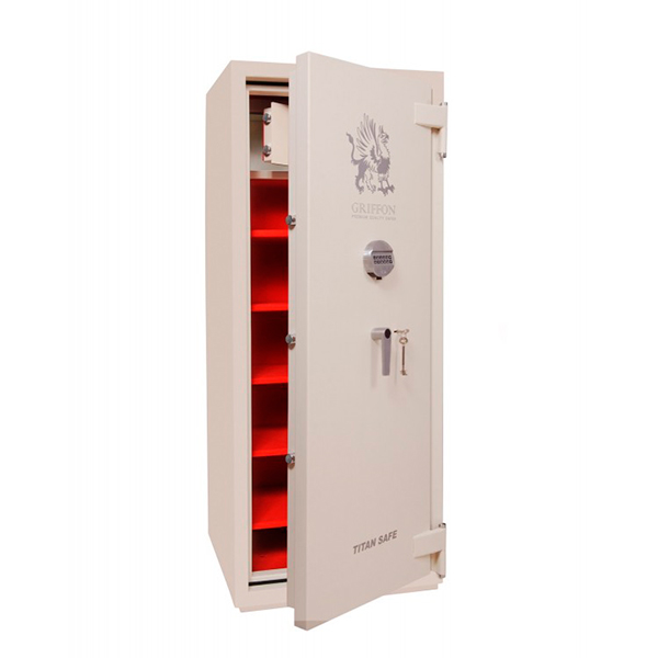 Корпус сейфа заполнен специальным огнестойким керамзитным бетоном. Он состоит из цемента, керамзита (гравий, щебень, глина) и стальной сетки Ø 6 мм для армирования. Однако он относится к легким бетонам, а его масса превышает другие виды бетона в два раза. Материал обладает сверхвысокой прочностью, стойкостью и хорошими теплоизоляционными свойствами. Толщина защитного слоя составляет 40 мм. Закрывается ключевым сейфовым замком STUV и электронным кодовым замком M-LOCKS, что создаст существенную преграду для злоумышленника. Запирание осуществляется ригельной системой трехстороннего действия. Толстые вращающиеся ригеля диаметром 25 мм обеспечат практическую защиту от возможности их перепиливания. Дополнительно со стороны петель имеются антисрезы. В кремовом цвете сейф отлично дополнит любое современное помещение в темных тонах и не будет выделяться.