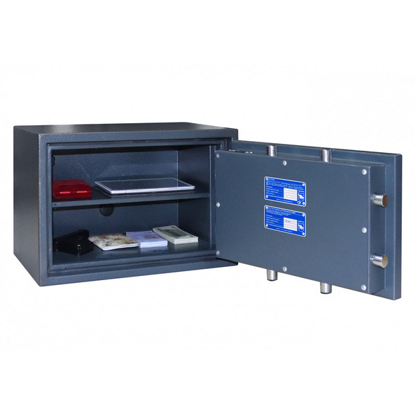 Внутреннее пространство имеет размеры: 260 мм по высоте, 420 мм по ширине и 215 мм по глубине. Также есть полка, которая позволит разделить, например, документы и деньги. Внутреннее пространство сейфа легко вмещает ценности, оружие или даже обычные папки с документами формата A4, расположенные горизонтально. Благодаря его компактным размерам, его можно комфортно разместить в любом помещении.