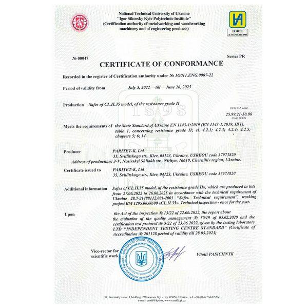 В комплекте идут инструкция по эксплуатации и паспорт с серийным номером. Гарантия на конструкцию сейфа составляет 5 лет, на замок 1 год.