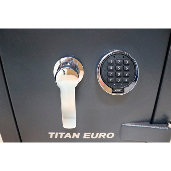 Корпус сейфа заполнен специальным фортификационным бетоном. Толщина защитного слоя составляет 55 мм.Вместе с электронным кодовым замком CARL WITTKOPP это создаст существенную преграду и для злоумышленника. Он оснащен светодиодной подсветкой синего цвета. Запирание осуществляется ригельной системой трехстороннего действия. Толстые вращающиеся ригеля диаметром 25 мм обеспечат практическую защиту от возможности их перепиливания. Дополнительно со стороны петель является антисрезы. Удобства пользования добавляет эргономичная ручка. В темно-сером цвете с эффектом молотковой эмали сейф отлично дополнит любое современное здание да не будет привлекать излишнее внимание.