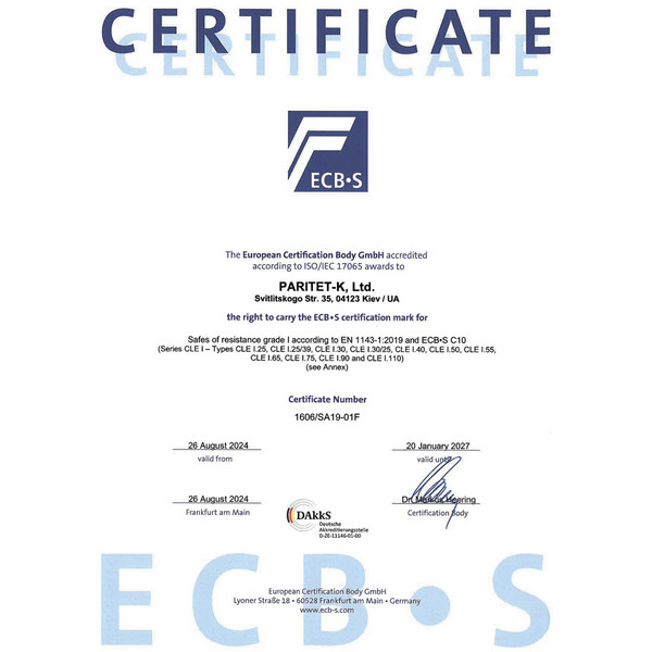 | Класс взломостойкости | I класс (Европейская сертификация) | |