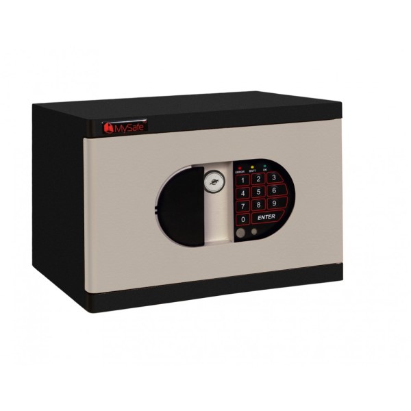 Корпус и двери сейфа изготовлены из металла толщиной 2 мм. Закрывается электронным кодовым замком MySafe. Особенностью этой модели является наличие ключевого замка EURO-LOCKS. Он выступает в роли аварийного и применяется только для открывания в том случае, если Вы забыли код от электронного замка или не хотите его вводить. Запирание осуществляется толстыми вращающимися ригелями диаметром 25 мм. Они обеспечат практическую защиту от возможности их перепиливания. Петли в форме антисрезов имеют внутреннее исполнение, поэтому их сбить совершенно невозможно. В сочетании черного и кремово-белого цвета отлично дополнит любое современное помещение.