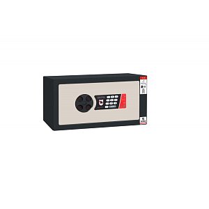 Корпус и двери сейфа изготовлены из металла толщиной 3 мм. Закрывается электронным кодовым замком GRIFFON. Запирание осуществляется толстыми вращающимися ригелями диаметром 25 мм. Они обеспечат практическую защиту от возможности их перепиливания. Петли имеют внутреннее исполнение. Они позволяют открыть двери сейфа на 90 градусов, не перекрывая при этом сам проем. В сочетании антрацитово-серого с кремово-белым цветом отлично дополнит любое современное помещение.