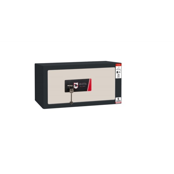 Корпус и двери сейфа изготовлены из металла толщиной 3 мм. Закрывается ключевым сувальдным замком. Запирание осуществляется вращающимися ригелями диаметром 16 мм. Они обеспечат практическую защиту от возможности их перепиливания. Петли имеют внутреннее исполнение. Они позволяют открыть двери сейфа на 90 градусов, не перекрывая при этом сам проем. В сочетании антрацитово-серого с кремово-белым цветом отлично дополнит любое современное помещение.