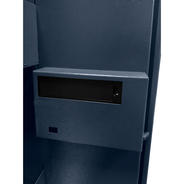 Корпус и дверь сейфа изготовлены из металла. Их толщина составляет 2,4 мм соответственно. Закрывается биометрическим замком GRIFFON FP.LIGHT, управляемым отпечатком пальца. Максимально можно прибавить к 35 отпечаткам. При аварийном случае можно открыть сейф ключом. Для этого есть специальное отверстие. Замыкание производится хромированной ригельной системой. В антрацитово-сером цвете сейф отлично дополнит современное помещение и не будет выделяться.