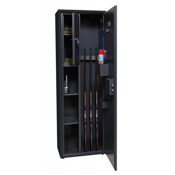 Внутреннее пространство имеет размеры: 1298 мм по высоте, 418 мм по ширине и 239 мм по глубине. Он включает в себя передвижной магнитный ложемент под оружие. Имеет съемные 3 полки для размещения небольших вещей. На дверях присутствуют съемные навесные переставляемые элементы: карманы для магазинов под патроны и средства по уходу за оружием, держатели для шомполов. Дополнительно сейф оборудован отдельным увеличенным кассовым отделом (трейзером), который можно закрыть на ключ. Его используют для хранения патронов, документов и т.п. Для удобства в нем тоже есть одна полка.
